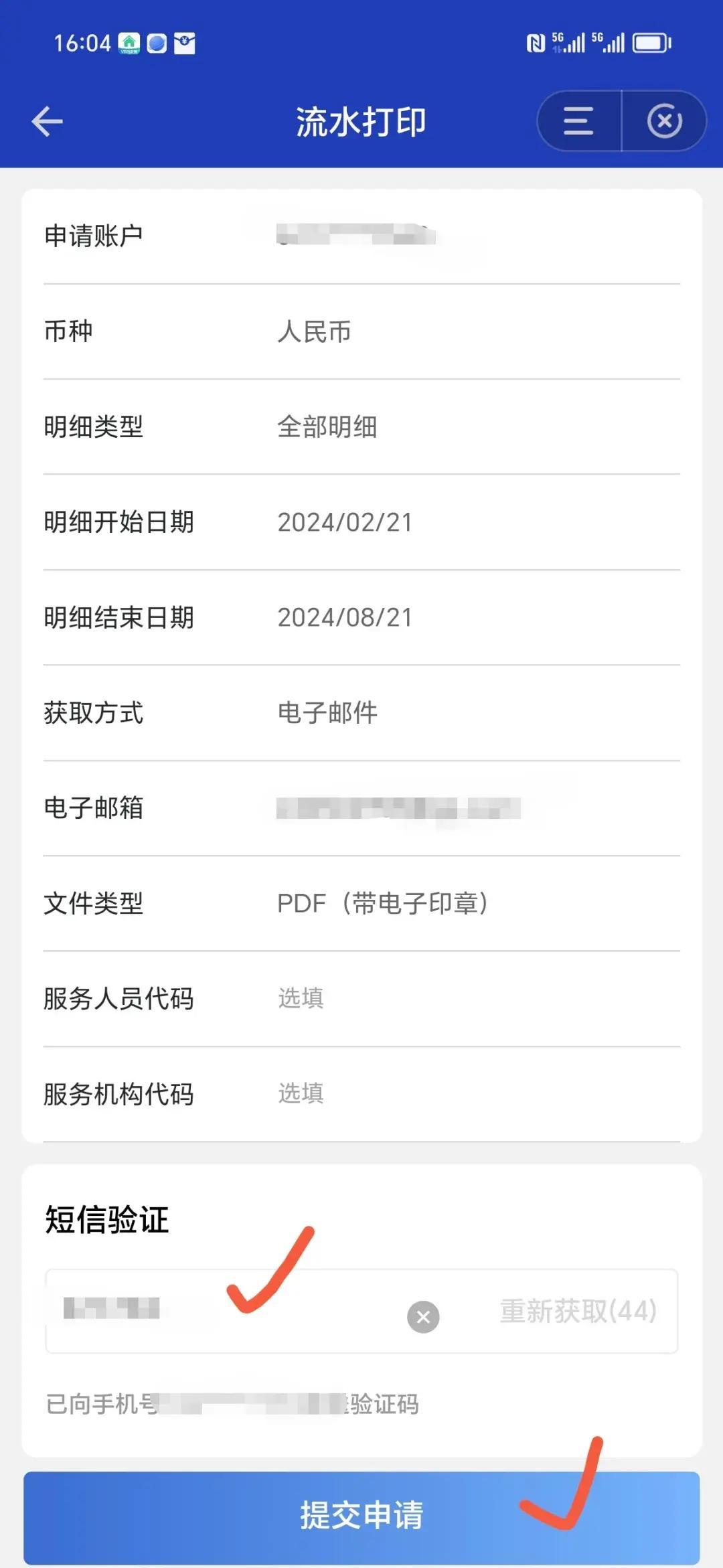 输入验证码提交申请,稍等片刻。