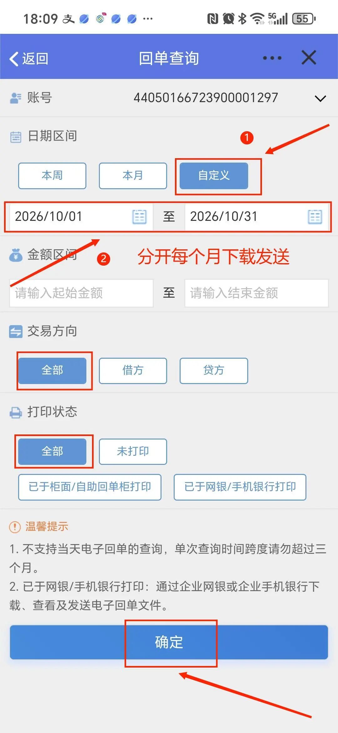 提醒:按月下载,时间:每月1日-每月最后一日,不能跨月,少打或多打。